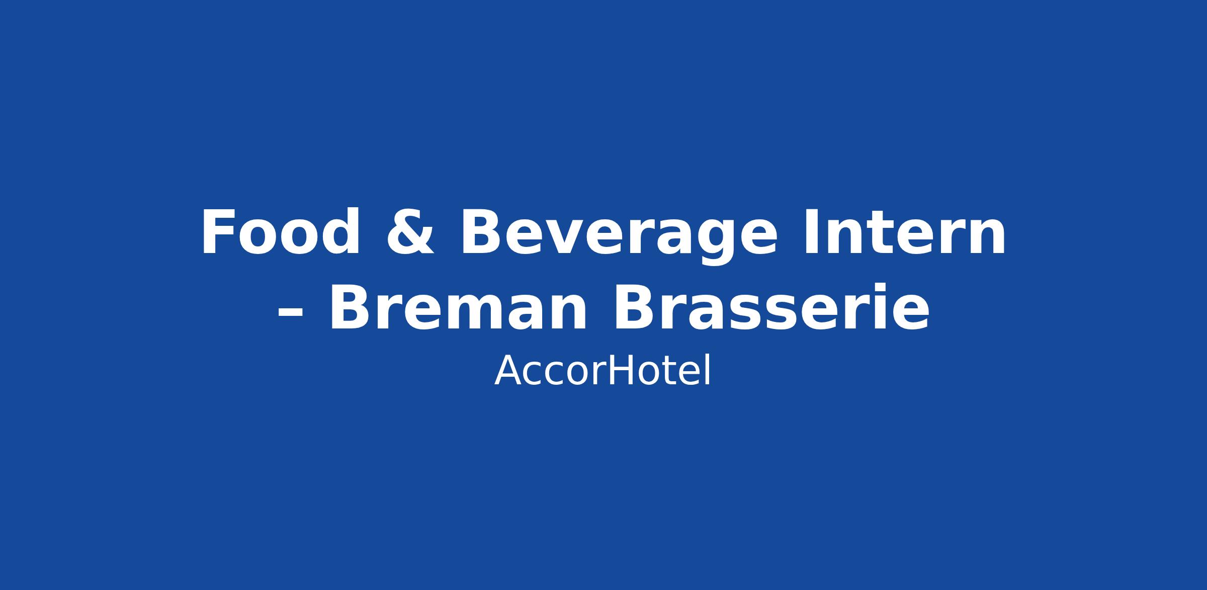 We’re looking for a Food & Beverage Intern to shake things up with us in Breman Brasserie.