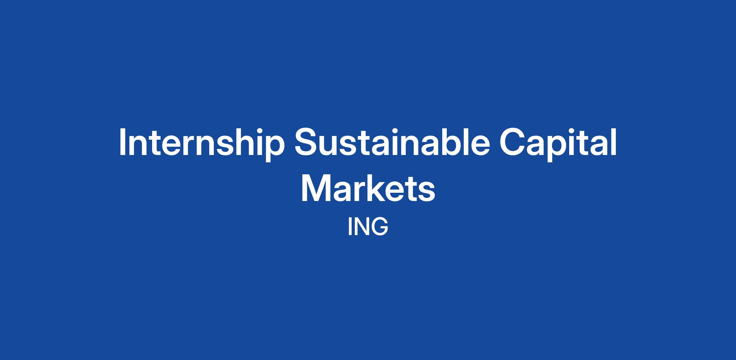 ING Wholesale Banking (“WB”) is looking to hire a Sustainable Capital Markets intern with a strong ambition to work in the Capital Solutions team, comprising of Capital Structuring, Liability Management & Sustainable Capital Markets team, based in Amsterdam.