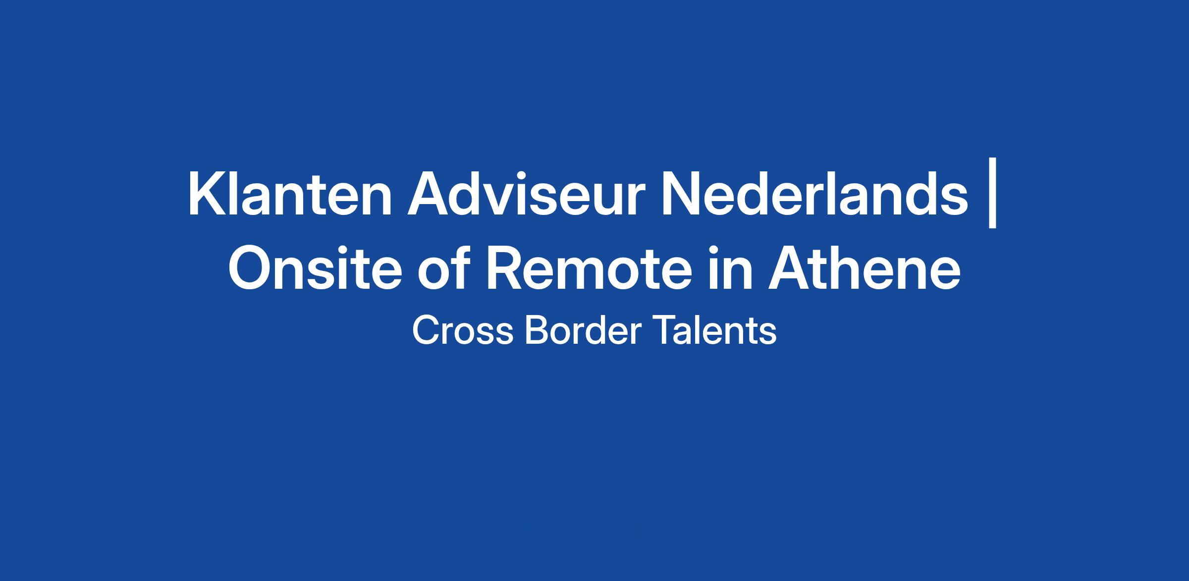 Start jouw Grieks avontuur! Klanten Adviseur Nederlands | Onsite of Remote in Athene