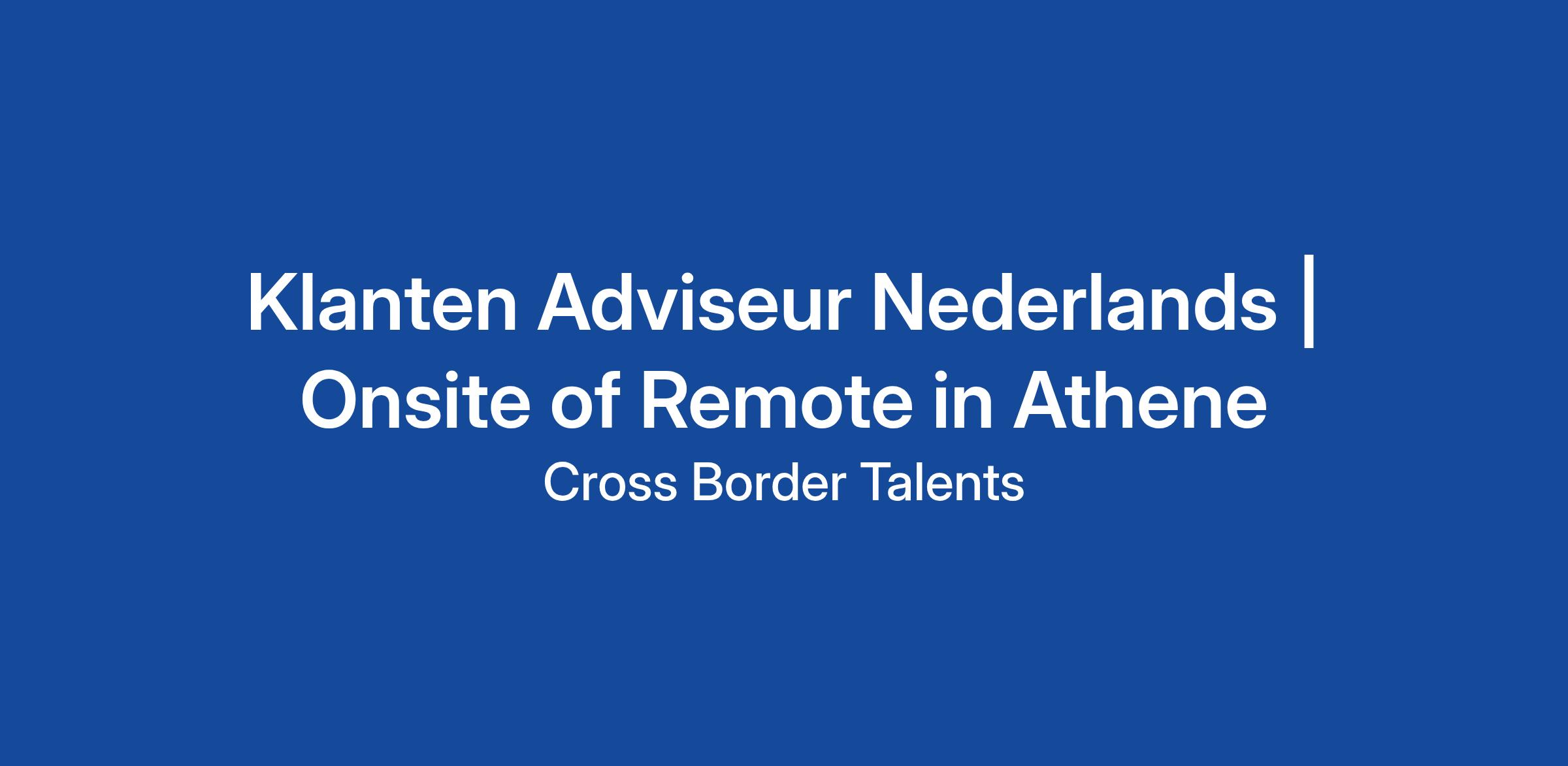 Start jouw Grieks avontuur! Klanten Adviseur Nederlands | Onsite of Remote in Athene