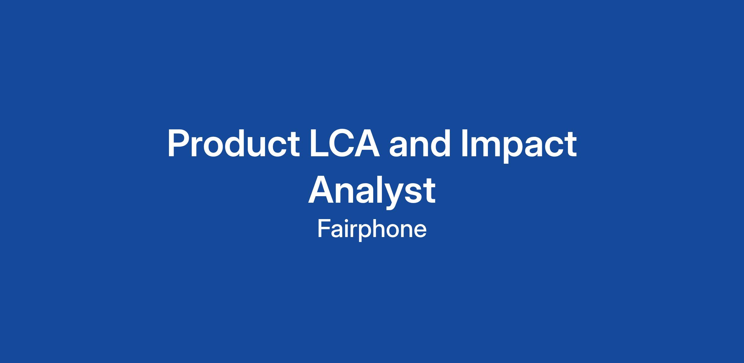 This role focuses on data quality, analysis, and insights. Full LCA modeling is conducted by dedicated specialists or external partners. Positioned at the intersection of sustainability, product development, and sourcing, it ensures LCA is not just a reporting exercise, but a practical tool that supports Fairphone’s mission to build more sustainable electronics.