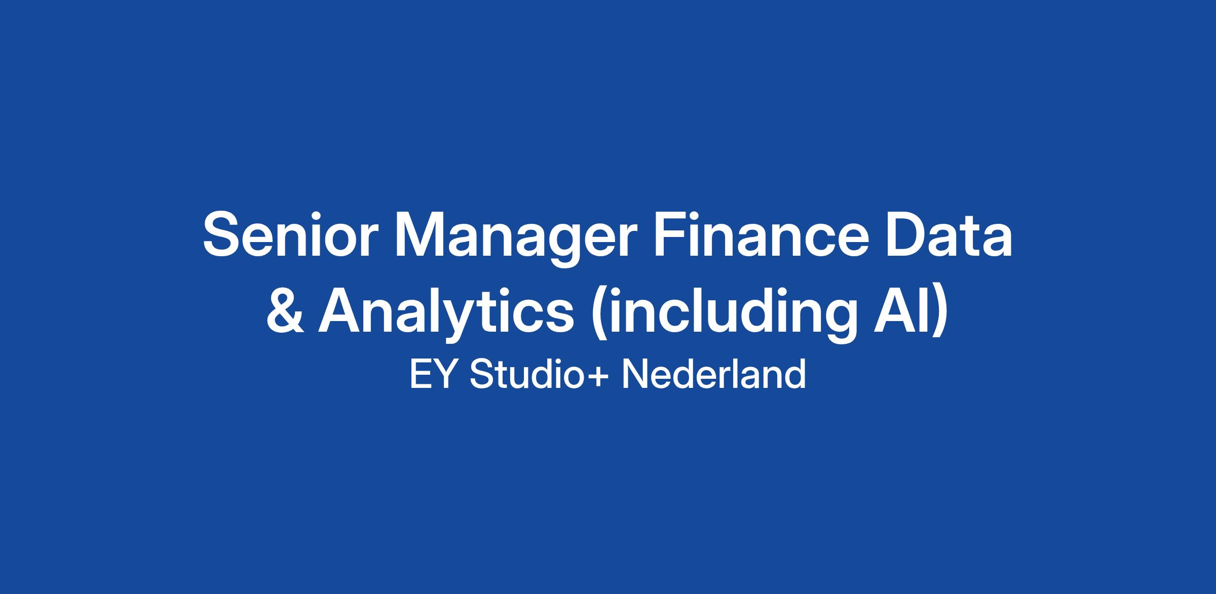 In case you have any questions about this vacancy please reach out to our Finance & AI leader Igor Djukic (Igor.djukic@nl.ey.com) or one of our partners Hassan Bettani (hassan.bettani@nl.ey.com).