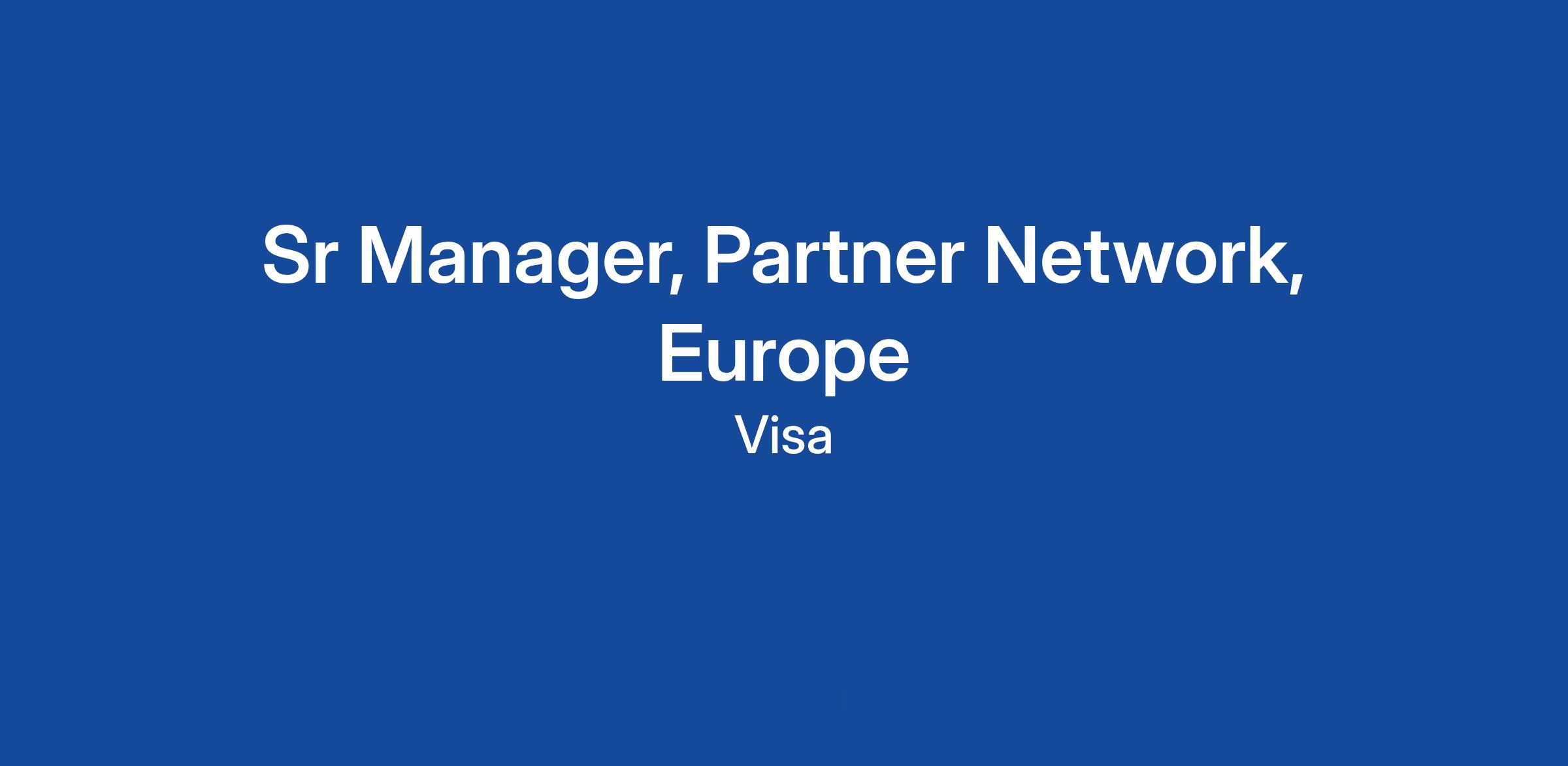 What Sr Manager, Partner Network, Europe does at Visa: