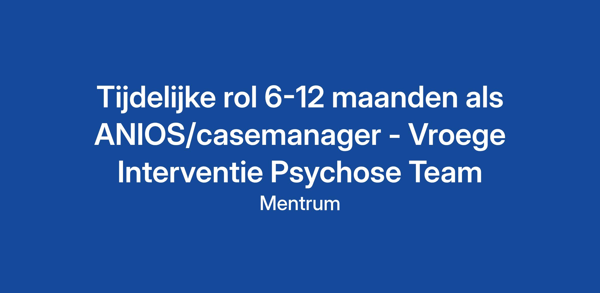 Wil jij werken met jongvolwassenen die zich geconfronteerd zien met een eerste psychose? Dit kan bij het VIP‑team in hartje Amsterdam. We hebben nu een tijdelijke rol, 6-12 maanden, beschikbaar voor een ANIOS die gaat werken als zelfstandig casemanager.