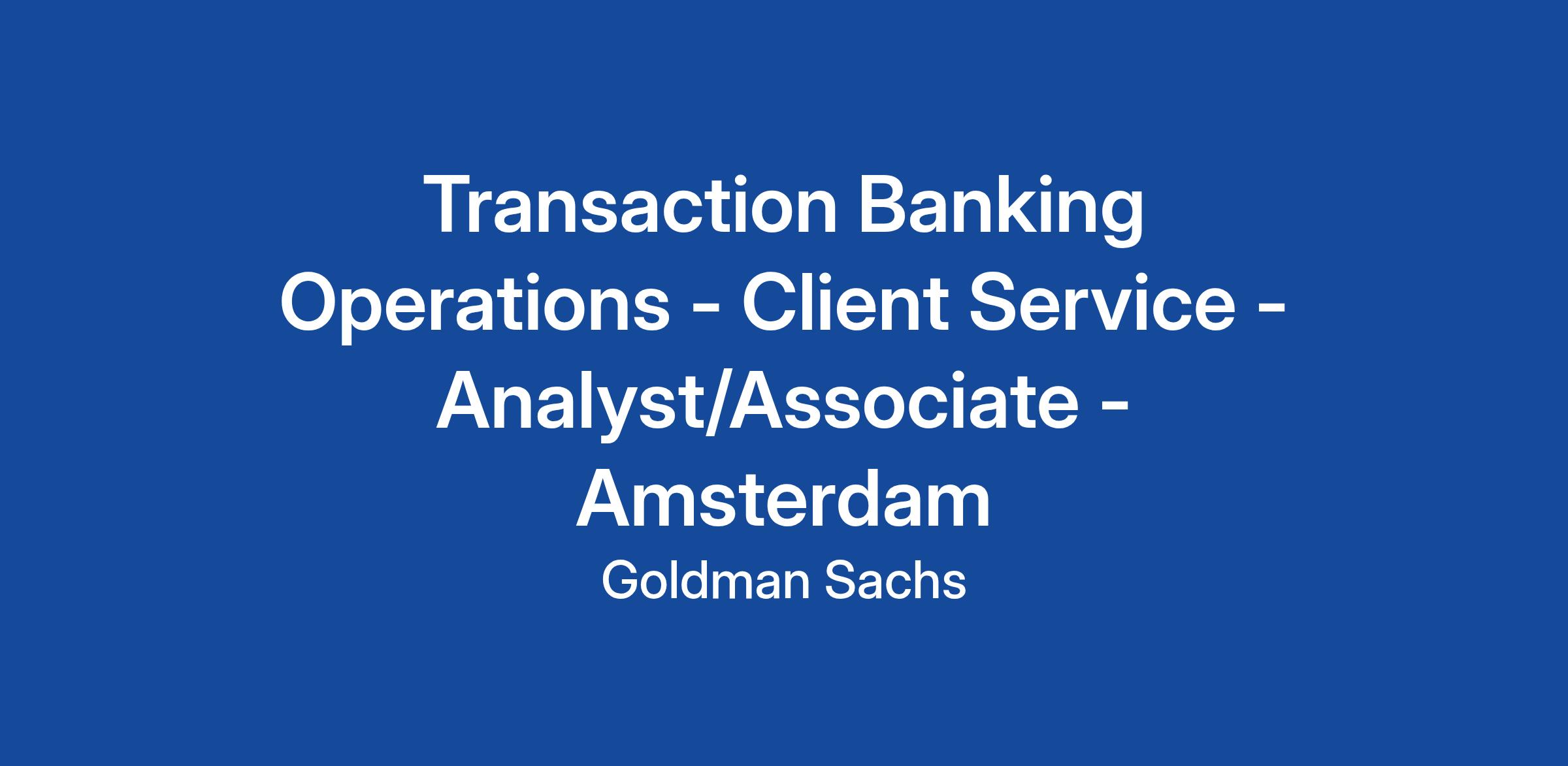 Transaction Banking Operations is part of Transaction Banking within the Platform Solutions Division. We are responsible for building, developing and supporting Goldman Sachs’ Transaction Banking offering that is delivering a range of treasury and cash management products to our corporate client base. Transaction Banking Operations provide essential risk management and controls architecture to preserve and enhance the firm's assets and reputation. For every new product launched and every trade executed, it is Operations that develops and manages the processes and controls that enable business flow.